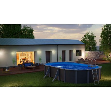 Piscine hors sol acier ovale - Gris anthracite - 6,34m x 3,99m x H 1,22m