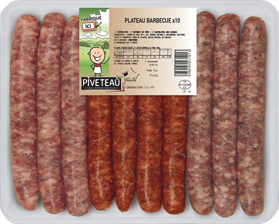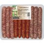 CHIPOLATA NATURE (ÉPAULE ET GORGE DE PORC, EAU, SEL, DEXTROSE, ARÔMES NATURELS, ANTIOXYDANTS : E300 ET E301) - CHIPOLATA HERBES (ÉPAULE ET GORGE DE PORC, EAU, SEL, DEXTROSE, FINES HERBES 0.2%, ÉCHALOTE, ARÔMES NATURELS, ANTIOXYDANTS : E300 ET E301) - MERGUEZ (VIANDE DE BŒUF, GRAS ET VIANDE DE MOUTON, EAU, SEL, ÉPICES ET PLANTES AROMATIQUES, CORRECTEURS D’ACIDITÉ : E262, E262I, E262II, E331, ANTIOXYDANTS : E301 ET E300, COLORANT E120). BOYAUX NATURELS DE MOUTON.