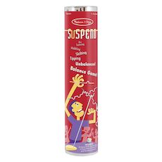 Contenu : 1 base en bois, 24 tiges de jeu, 4 tiges d'armature, 1 connecteur en bois , 1 dé de couleur, les règles du jeu. Suspend est un jeu d'équilibre et de dextérité, recommandé pour les enfants dès l'âge de 8 ans. À chaque tour, une nouvelle pièce est ajoutée à la sculpture verticale en constante transformation, ce qui provoque un ajustement de l'équilibre et hausse le niveau de difficulté. Suspend mettra vos nerfs à rude épreuve ! Il va falloir trouver votre équilibre ! Tirez au sort à l'aide d'un dé la pièce à placer (une baguette métallique plus ou moins longue avec de une à cinq encoches pour s'accrocher). Reste alors à la placer sur le mobile constitué des pièces déjà suspendues mais sans les faire tomber ! Vous récupérez les pièces que vous faites choir : le premier qui n'a plus de baguettes à mettre ni dans sa réserve ni dans la réserve commune a gagné.
