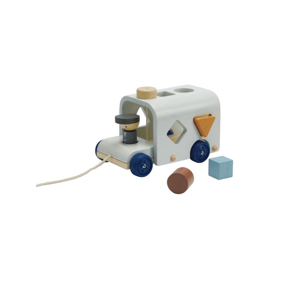Ce bus de tri contient 3 formes colorées. Tirez sur la languette du dessus pour faire glisser toutes les pièces et recommencer. Bois d'hévéa 95% recyclé et 95% recyclable - pigments naturels et peintures non toxiques à base d'eau. ?Boite carton craft 95% recyclé et 95% recyclable - encres biodégradables à l'eau et au soja. Dimensions : 20 x 13,1 x 13,7 cm. A partir de 12 mois.