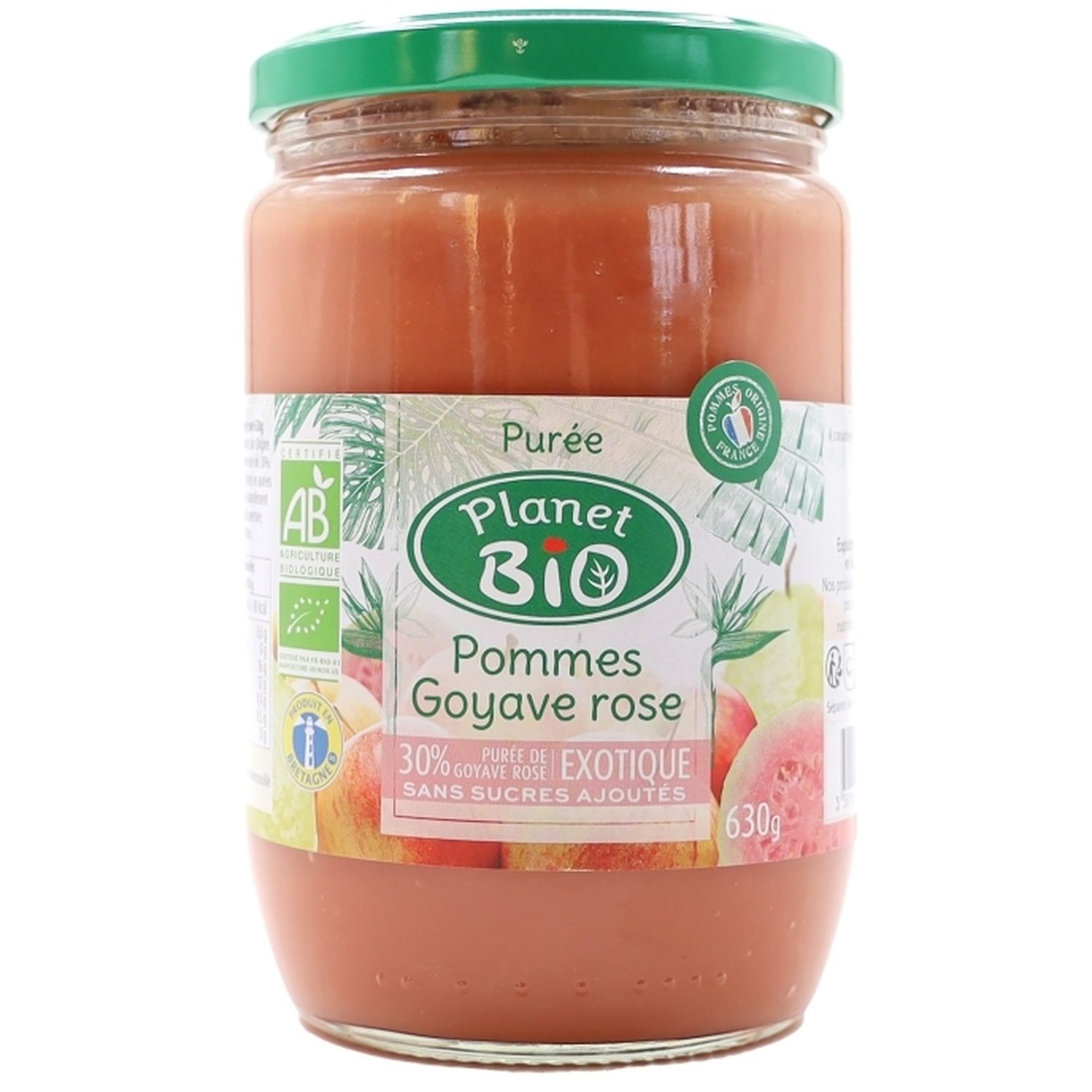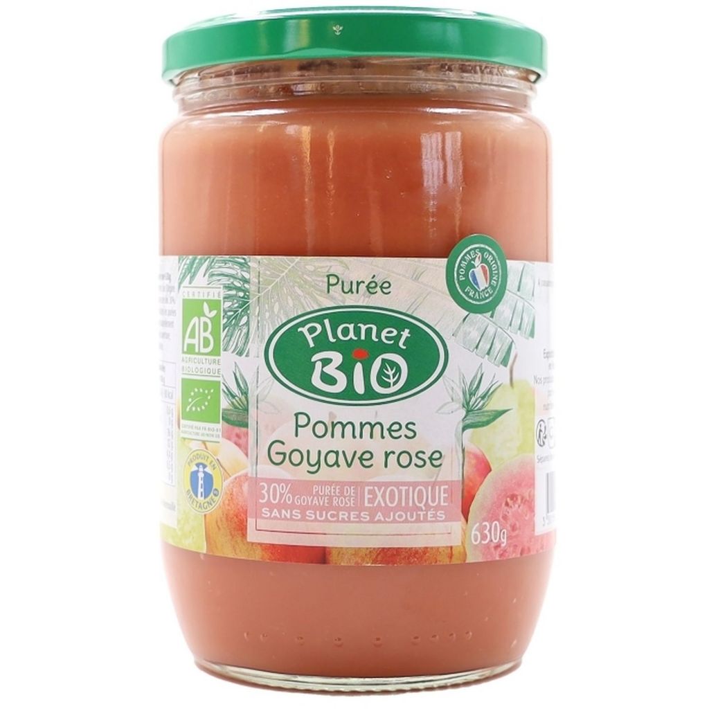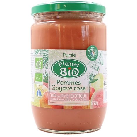 Purée de pommes* (origine France) (70%), purée de goyave rose* (30%)