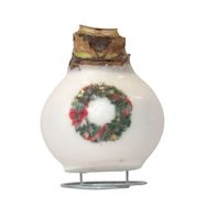 Les magnifiques fleurs rouges et élégantes illuminent votre intérieur d'hiver. Elles fleurissent pendant 3 à 6 semaines. Le bulbe présente une couche de cire blanche porcelaine avec un motif festif de couronne de Noël, apportant une touche élégante et hivernale.