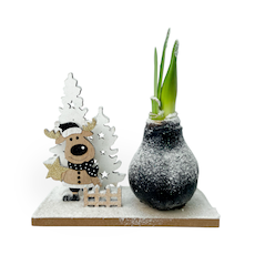 Apportez une touche hivernale à votre intérieur avec l'Amaryllis ! Les magnifiques fleurs rouges ajoutent chaleur et ambiance festive à votre décoration. Avec une floraison de 3 à 6 semaines, profitez longtemps de leur élégance. Le bulbe présente une couche de cire noire avec un léger effet neige et s'accompagne d'un adorable renne en bois. Une pièce élégante et raffinée, parfaite pour la magie des fêtes.