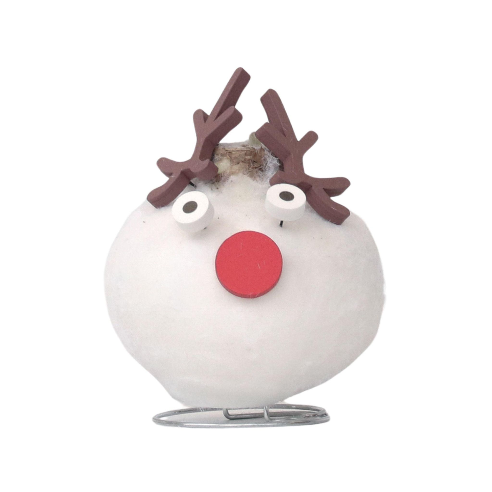 Apportez l'ambiance hivernale chez vous avec l'Amaryllis ! Les magnifiques fleurs rouges et élégantes apportent chaleur et couleur à votre intérieur d'hiver. Elles fleurissent pendant 3 à 6 semaines. Le bulbe arbore un amusant design de renne avec nez rouge et bois, pour une touche joyeuse et festive. Une pièce originale, parfaite pour l'esprit de Noël !