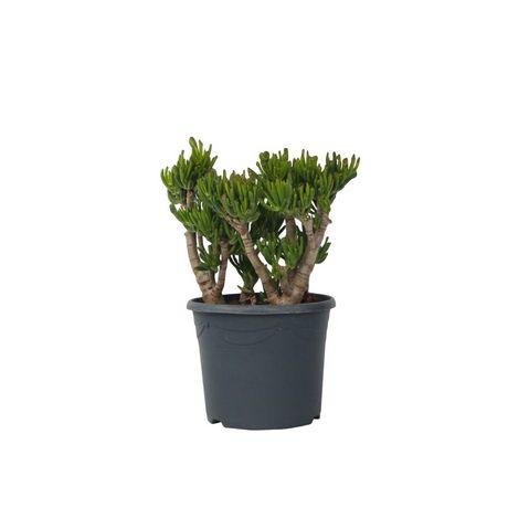 Crassula ovata 'Hobbit', également connue sous le nom de plante de jade, est un cultivar unique de la populaire succulente Crassula ovata. Elle se distingue par ses feuilles tubulaires et cylindriques qui se recourbent pour ressembler aux orteils d'un hobbit mythique. Cette succulente est originaire d'Afrique du Sud et prospère dans des conditions sèches et arides, ce qui en fait une plante d'intérieur nécessitant peu d'entretien. Tout comme les autres variétés de Crassula ovata. Avec des soins appropriés, elle peut développer des grappes de petites fleurs blanches ou roses en forme d'étoile pendant sa période de floraison, ce qui ajoute à sa valeur ornementale. Cependant, cela se produit le plus souvent dans les climats chauds du sud de l'Europe. Les fleurs n'apparaissent presque jamais dans les climats plus frais. Cependant, même sans fleurs, la plante est un bel ajout à n'importe quelle pièce.