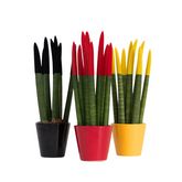 La Sansevieria 'Velvet Touchz' est une plante robuste et très décorative qui demande peu d'entretien. Naturellement verte, ses pointes sont colorées avec une peinture à la texture douce comme du feutre ! Le pot décoratif assorti est inclus. La couleur finira par disparaître, mais cela prendra plusie