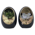 Ces plantes succulentes 'sans racines' sont un élément de décoration spécial pour votre maison. Ce sont des plantes succulentes vivantes, mais comme elles n'ont pas de racines, elles n'ont pas besoin d'être en terre. Les succulentes Rootless sont donc parfaites pour une décoration verte élégante. Les deux succulentes Echeveria Egg Black Gold se présentent sous la forme d'œufs noirs et dorés uniques, qui constituent un ajout frappant et chic à votre intérieur. La succulente Rootless peut rester sans eau pendant des mois, car l'eau est stockée dans les feuilles. Ces plantes succulentes sont donc parfaites pour les personnes qui souhaitent bénéficier du confort des plantes dans leur maison, sans avoir à s'en occuper.