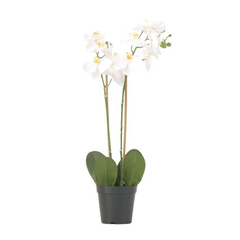 Apportez une touche de pure élégance chez vous avec cette orchidée phalaenopsis blanche artificielle. Avec ses tiges élancées, ses fleurs délicates et sa finition réaliste, elle dégage luxe et sérénité. Les pétales fins et la structure réaliste des feuilles rendent cette orchidée presque impossible à distinguer d'une vraie. Profitez toute l'année d'un aspect frais et élégant – sans jamais devoir tailler, rempoter ou arroser.