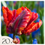 La Tulipa Rasta Parrot est une tulipe perruche unique et accrocheuse, connue pour son look exotique. Avec ses pétales joliment enroulés et frangés aux couleurs vibrantes, cette tulipe attire tous les regards dans n'importe quel jardin. Les fleurs de la Tulipa Rasta Parrot ont une forme frappante et une belle couleur rouge-orange et jaune. Cette tulipe fleurit au printemps et peut atteindre une hauteur d'environ 40 cm.