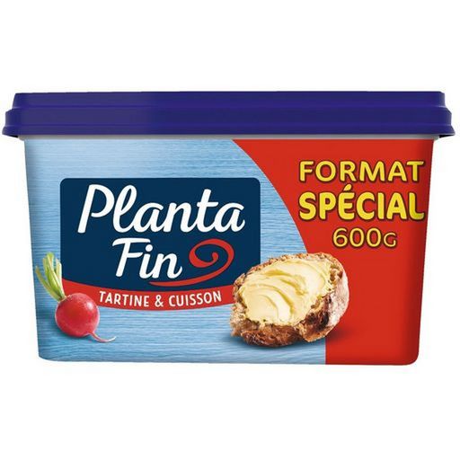 Ingrédients : huiles végétales 60% (palme, colza, tournesol, en proportion variable), eau, poudre de babeurre (LAIT), sel 1,5%, émulsifiants : mono et diglycérides d'acides gras et lécithine de tournesol, correcteur d'acidité : acide lactique, arôme naturel, vitamines A et D, colorant : caroténoïdes.