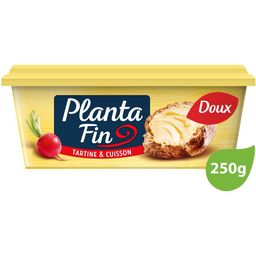 Elaborée avec l'aide de nos nutritionnistes, Planta Fin Tartine & Cuisson est une margarine allégée en matière grasse (60%). Sa recette, issue d'huiles 100% végétales non hydrogénées, est enrichie en vitamines A et D et contribue ainsi au fonctionnement normal du système immunitaire. Son goût délicat et frais, ainsi que sa texture onctueuse et facilement tartinable, rendent Planta Fin Tartine & Cuisson irrésistible aussi bien en tartine, en cuisson, en pâtisserie, sur vos plats qu'en accompagnement de repas. Margarine allégée (60% M.G.), enrichie en vitamines A et D, aux huiles 100% végétales.