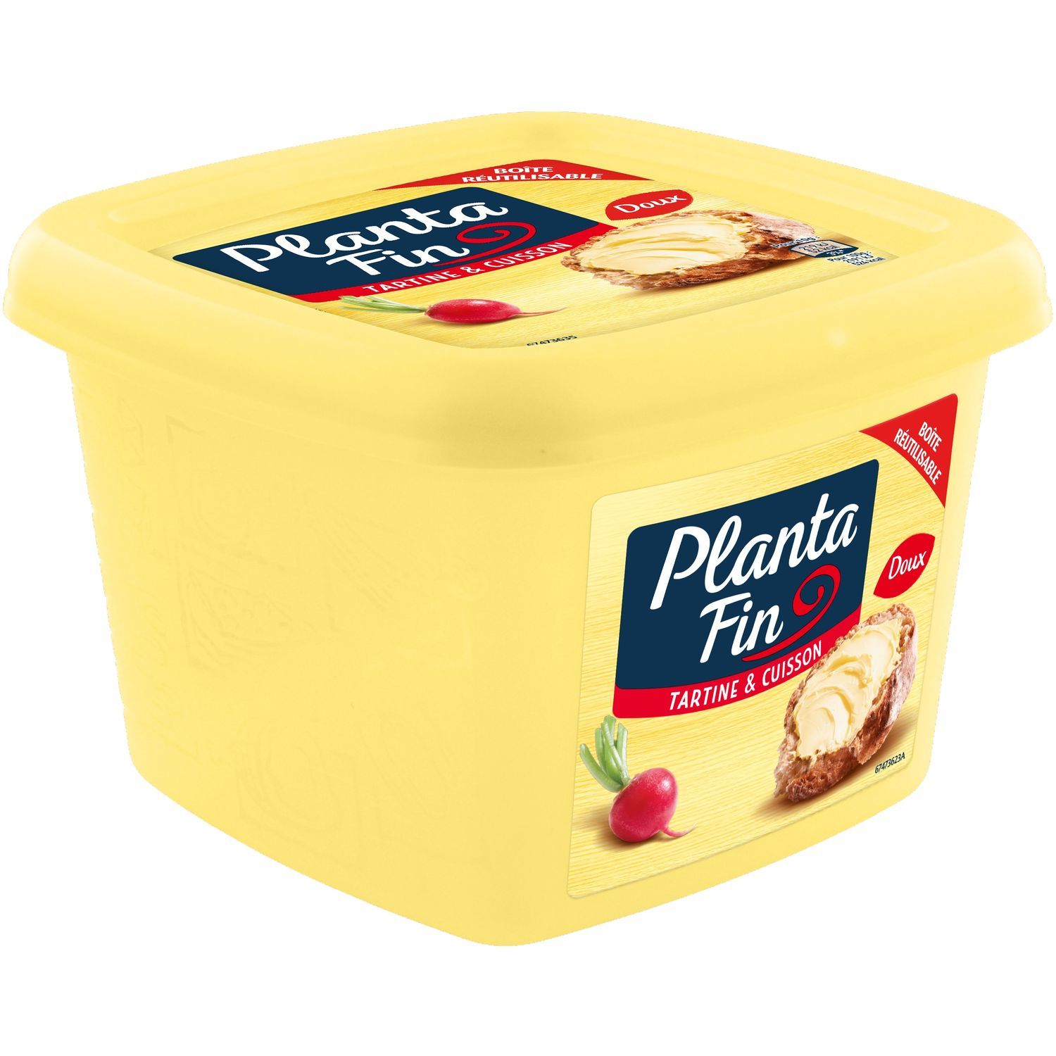 Planta Fin, l’allié gourmandise et nutrition pour toute la famille. Née en 1976, Planta Fin est reconnue pour son goût et ses recettes uniques, riches en acides gras essentiels, indispensables au développement des enfants et contribuant au bon équilibre nutritionnel de toute la famille. Elaborée avec l'aide de nos nutritionnistes, Planta Fin Tartine & Cuisson est une margarine allégée en matière grasse (60%). Sa recette, issue d'huiles 100% végétales non hydrogénées, est enrichie en vitamines A et D et contribue ainsi au fonctionnement normal du système immunitaire. Par exemple, une portion de 10 g Planta Fin Tartine & Cuisson garantit 10 à 15% des apports journaliers en vitamines A et D. Son goût délicat et frais, ainsi que sa texture onctueuse et facilement tartinable, rendent Planta Fin Tartine & Cuisson irrésistible aussi bien en tartine, en cuisson, en pâtisserie, sur vos plats qu'en accompagnement de repas. Elle peut être utilisée en cuisine pour tout type de recette et être savourée à tout moment de la journée : au petit-déjeuner pour un petit-dejeuner équilibré, au déjeuner ou au dîner pour relever le goût des plats, au goûter pour de savoureuses pâtisseries,... En plus, la plupart de ses recettes sont sans conservateur. Elles contiennent des arômes et colorants d'origine naturelle. La gamme Planta Fin Tartine & Cuisson existe en différents formats (250g, 510g et kg) et également en variété demi-sel. Planta Fin propose aussi une recette spécifique tartine, idéale aussi pour vos toasts et sandwichs, avec encore plus de saveurs car contenant 10% de beurre reconstitué. Découvrez aussi Planta Fin Cuisine Facile (variété doux ou olive), son format liquide, très pratique d'utilisation simplifiera la préparation des repas en famille.