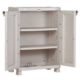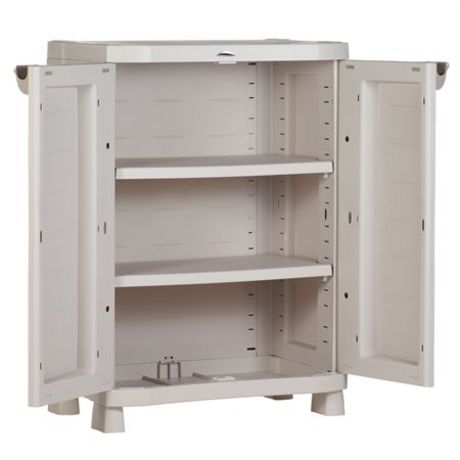 Armoire de rangement en plastique, 2 portes finition beige teintée dans la masse. Portes cadenassables.