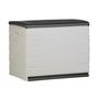 Ce coffre est doté de poignées et de roulettes, facilitant ainsi son déplacement et son nettoyage. La couleur neutre et le design élégant s'intègrent parfaitement dans tout environnement, que ce soit dans un jardin, une terrasse ou à l'intérieur de votre maison. De plus, il est cadenassable pour une sécurité accrue.