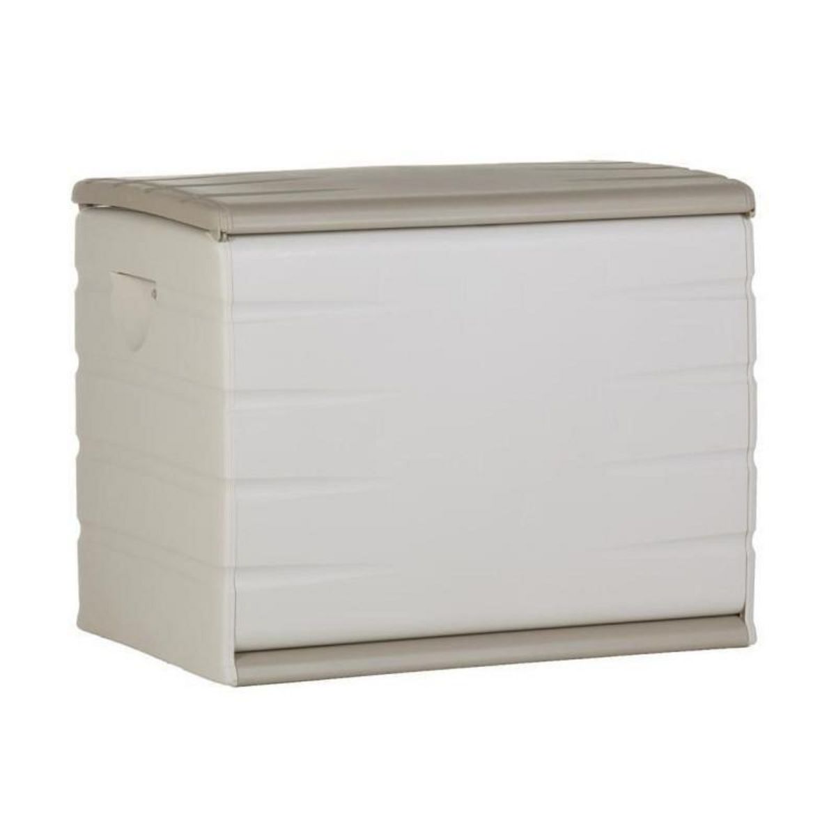 PLASTIKEN Coffre 260L Interieur/Exterieur Fonctionnel et Esthetique Cadenassable avec Roulettes Beige