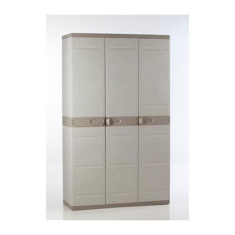TITANIUM PLASTIKEN Armoire 3 portes avec etageres + penderie l105 x p44 x h176 cm Beige et Taupe Gamme TITANIUM Interieur/Exter