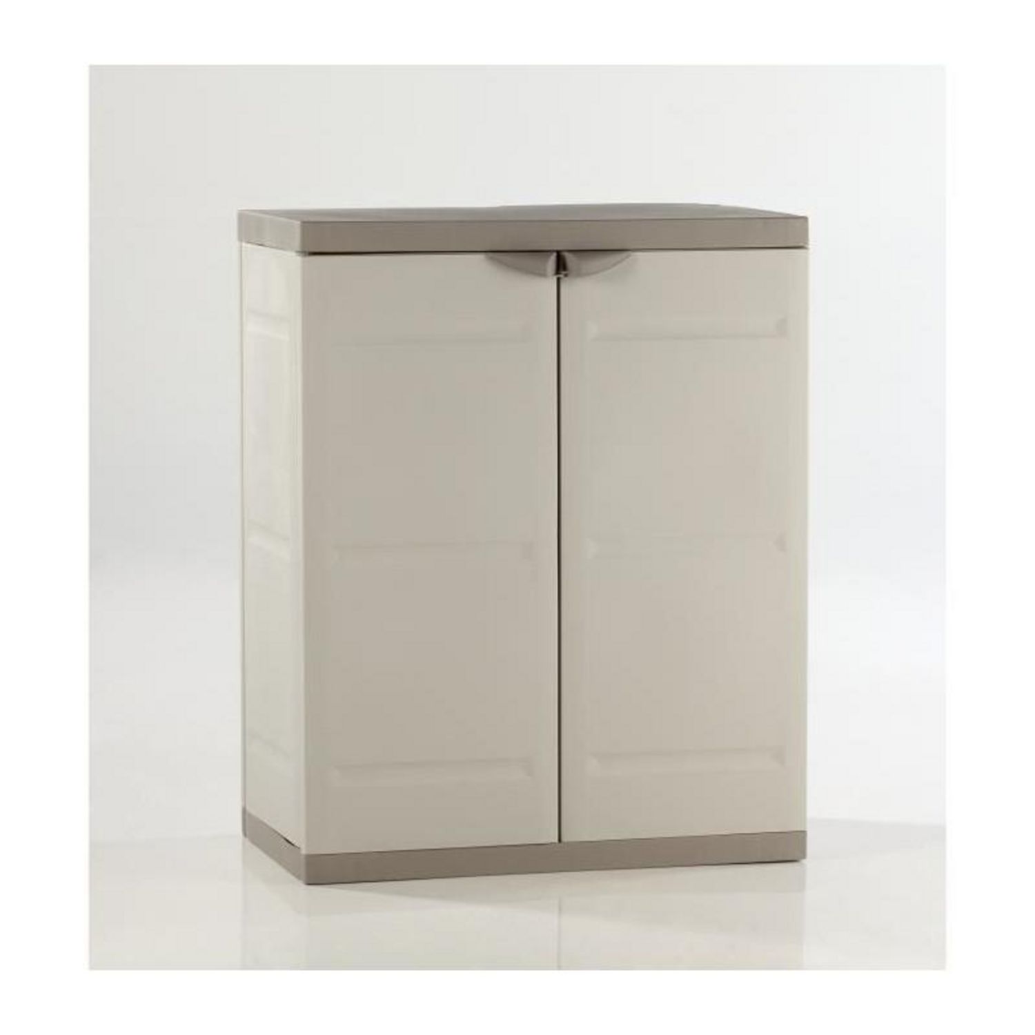 TITANIUM PLASTIKEN Armoire basse 2 portes avec etageres l70 x p44 x h88 cm Beige et Taupe Gamme TITANIUM Interieur/Exterieur