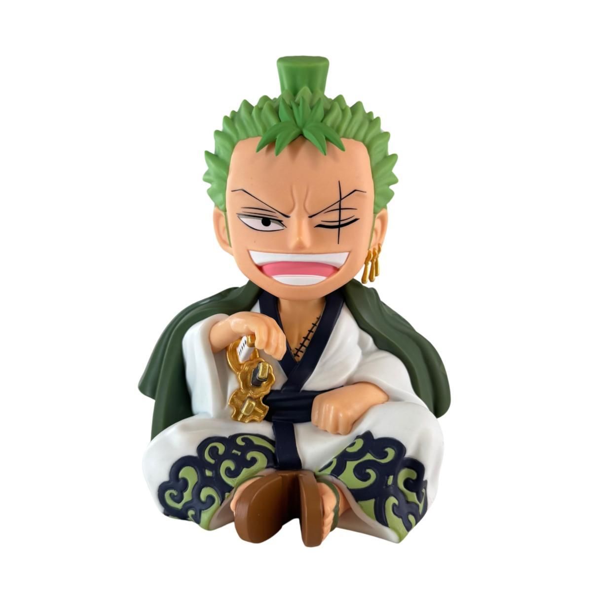 Découvrez notre tirelire Zorojuro , inspirée de l'arc Wano. Cette pièce maîtresse reflète la détermination du samouraï Zoro tout en gardant vos économies en sécurité. Un incontournable pour les collectionneurs et les passionnés de l'univers One Piece ! Hauteur : 15?cm Matière : PVC