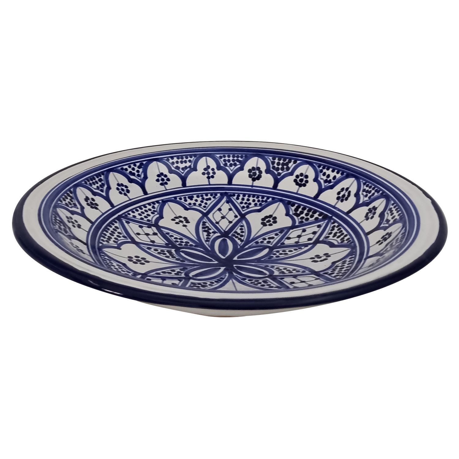 Plat à couscous en faïence 33 cm Non compatible au lave vaisselle Présentez et servez votre couscous ou tout autre plat dans ce plat à couscous en terre cuite de diamètre 33 cm avec d'élégants motifs