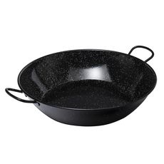 Le secret de la paella, c'est un plat adapté. Son diamètre doit être suffisant pour permettre aux différents ingrédients de cuire ensemble. Avec ce modèle émaillé,vos paellas seront un vrai régal. Diamètre en haut du plat: 50cm.Diamètre dessous du plat: 37cm. Hauteur intérieure:11cm. Facile à nettoy