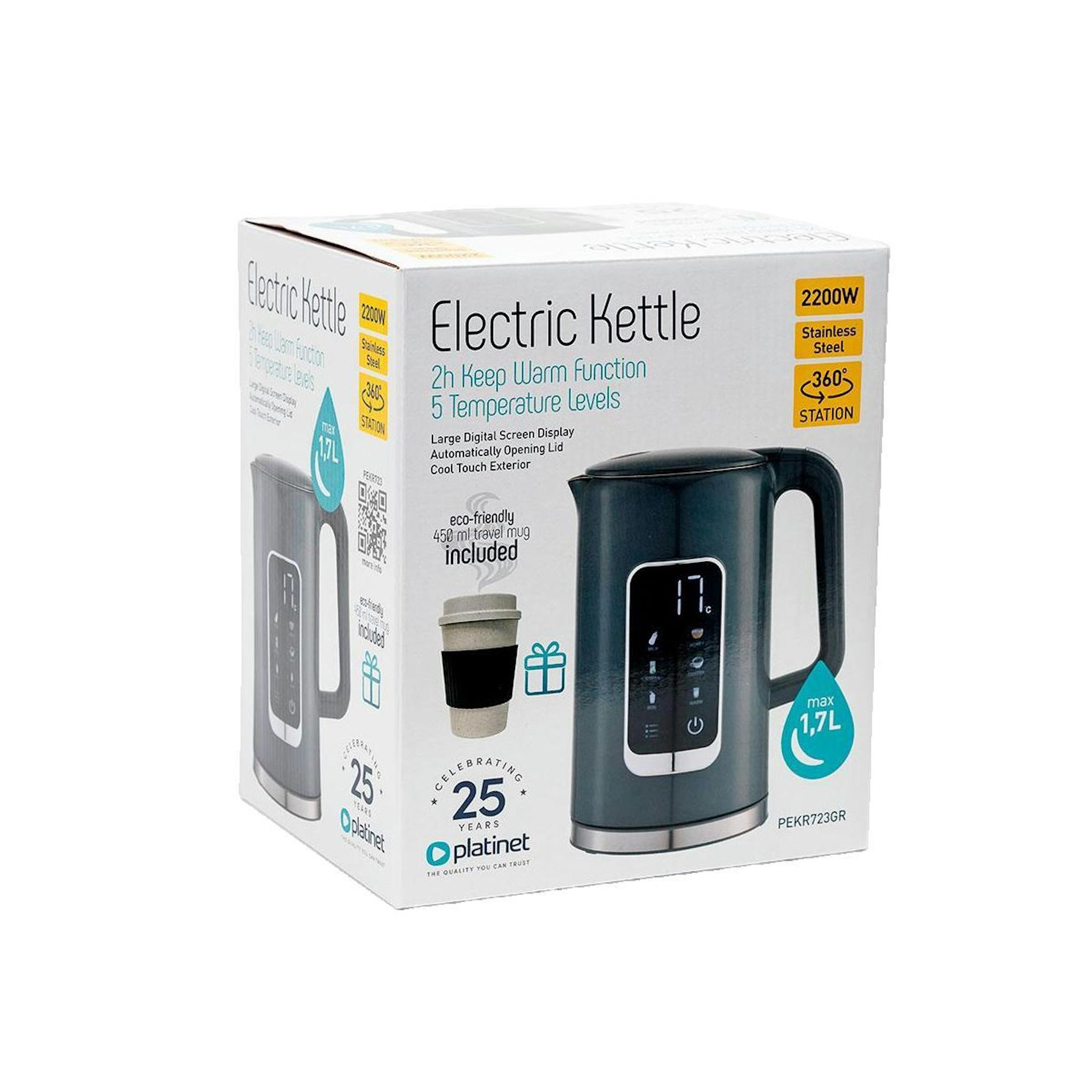 Bouilloire Platinet PEKR723GR Gris, 1,7 litre, écran numérique