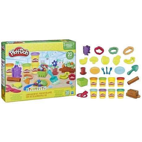 Le coffret Play-Doh Mon petit jardin est idéal pour les jeunes artistes en herbe. Il comprend 8 pots de pâte à modeler multicolore, non toxique, fabriquée à partir de plastiques d'origine durable. Grâce aux 20 outils pratiques, comme les rouleaux et emporte-pièces, les enfants peuvent créer des fleu