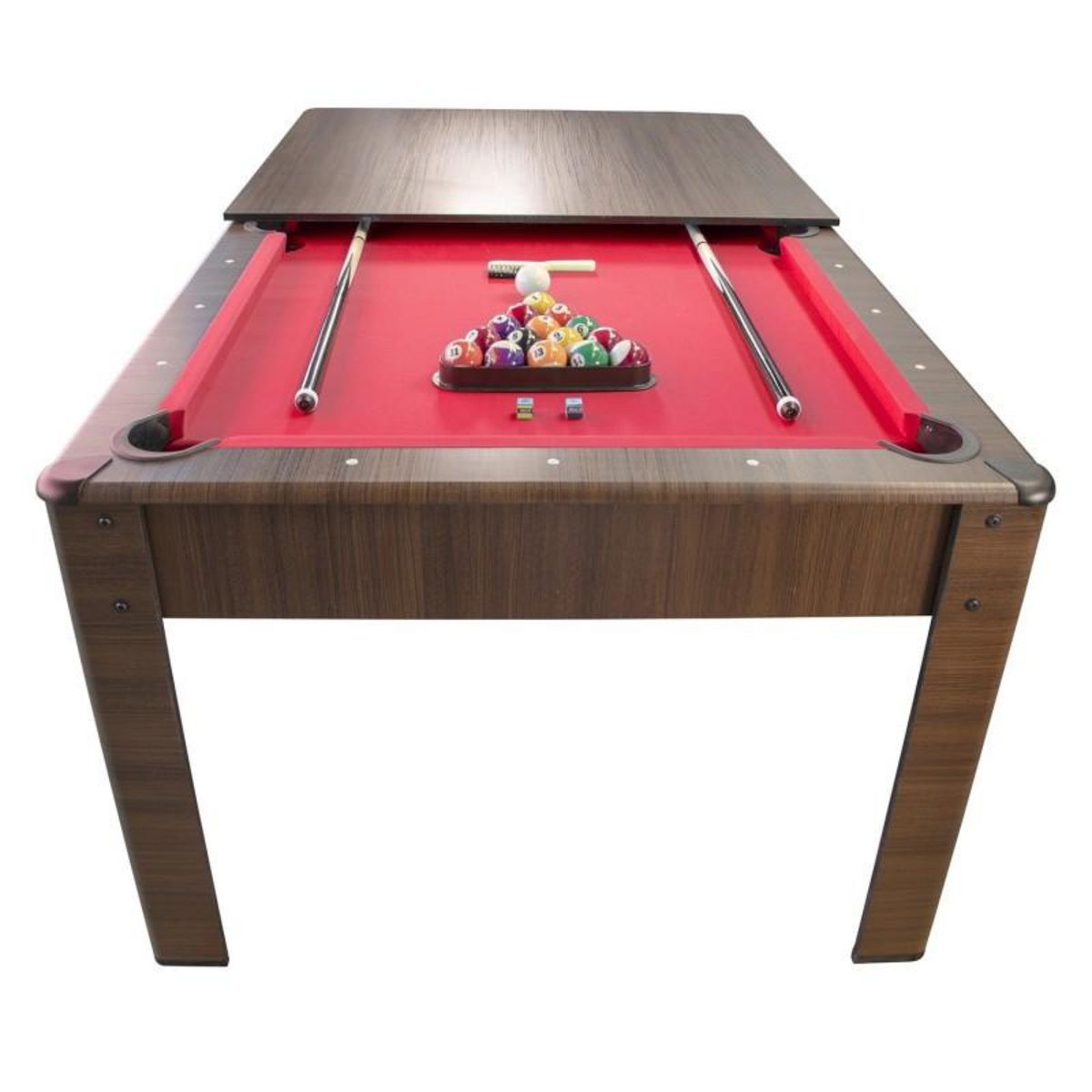 Cette table de Billard peut se convertir en table à manger ou en bureau, grâce au plateau (en 2 parties) inclus et peut accueillir confortablement 8 personnes.