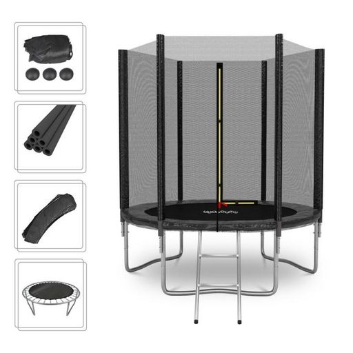 Trampoline de Jardin Deluxe 6FT ø185cm Noir - avec Filet de sécurité, Tapis de saut, Coussin de protection, Echelle