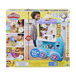 Ce grand coffret de cuisine donne aux enfants plus d'espace pour exprimer leur imagination débordante. Les 27 outils et la machine a glace a l'italienne permettent de créer toutes sortes de desserts glacés, de personnaliser les créations avec la manivelle a vermicelles, les outils et les moules a bonbons Play-Doh, et de faire payer les clients a la caisse. Les enfants auront l'impression d'etre de vrais marchands de