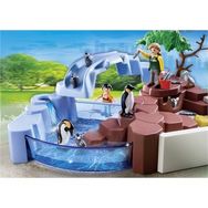Coffret de jeu Playmobil 4013 transportable grâce à sa poignée. Le décor du jeu est déjà monté pour pouvoir jouer rapidement. Le bassin peut se remplir d'eau. Avec deux personnages, deux pingouins adultes et quatre bébés pingouins.