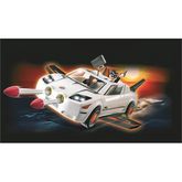 A bord de la voiture des agents secrets Playmobil 4876, l'agent doit rejoindre son quartier général? En effet,une terrible menace plane sur le monde ! Le docteur Maléfice et son Robo-Gang ont inventé des capsules Chaos, un redoutable virus ! La voiture peut prendre plusieurs formes et tire des mis