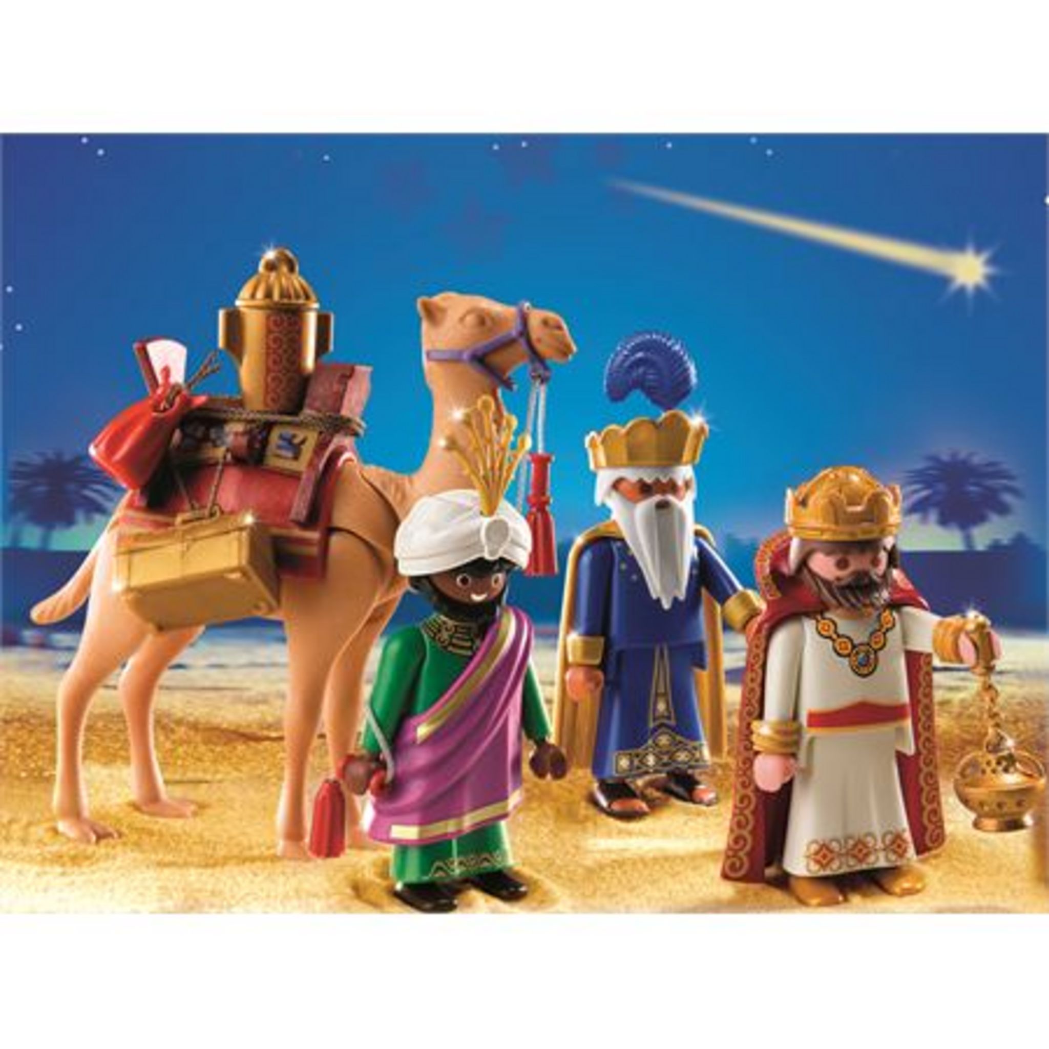 Avec trois rois mages et leurs riches habits, un dromadaire et de nombreux accessoires, Playmobil 4886.