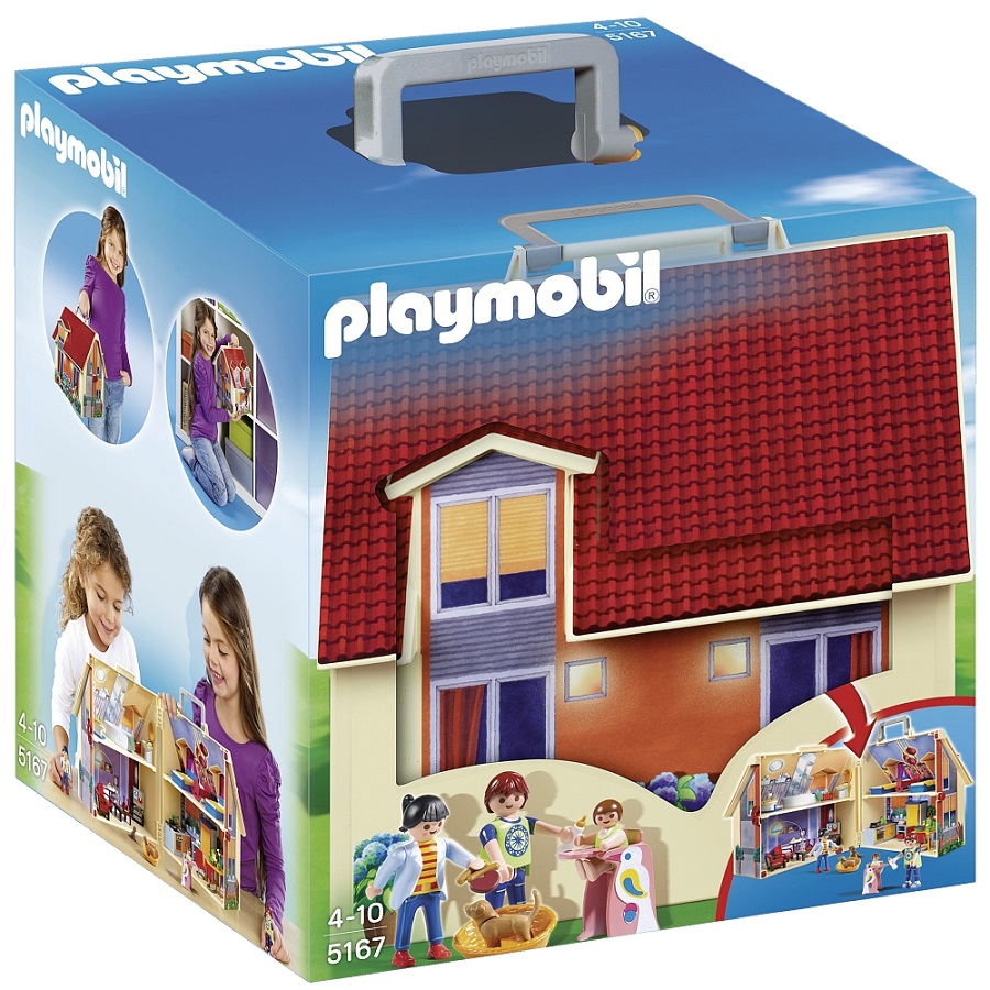 - Une maison transportable avec de nombreuses pièces de jeux: salle de bains, chambre, salon et cuisine.