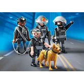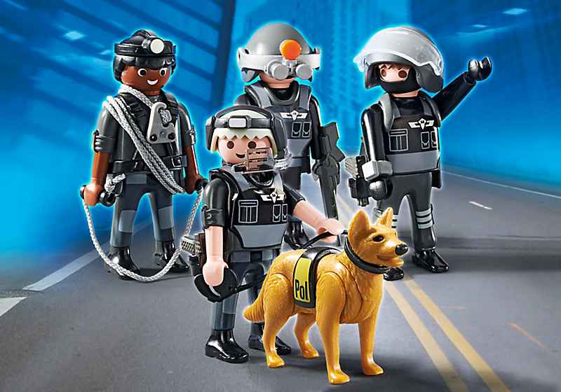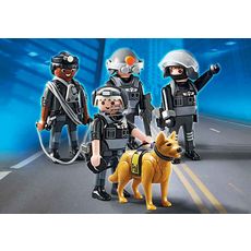 Avec leur équipement moderne et leur chien d'attaque, les policiers des forces spéciales veillent sur les habitants Playmobil !