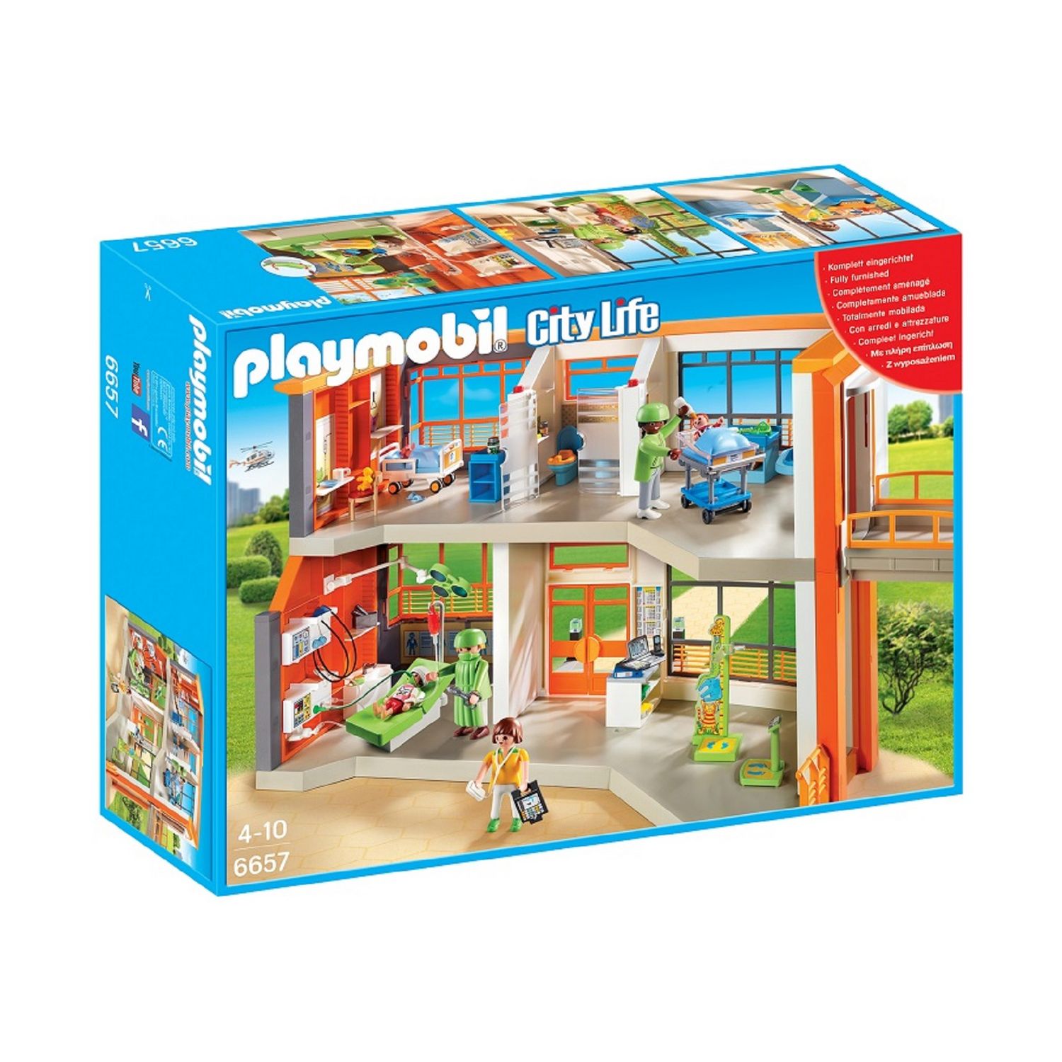Composition de la boîte Hopital pédiatrique aménagé 6657 Playmobil :