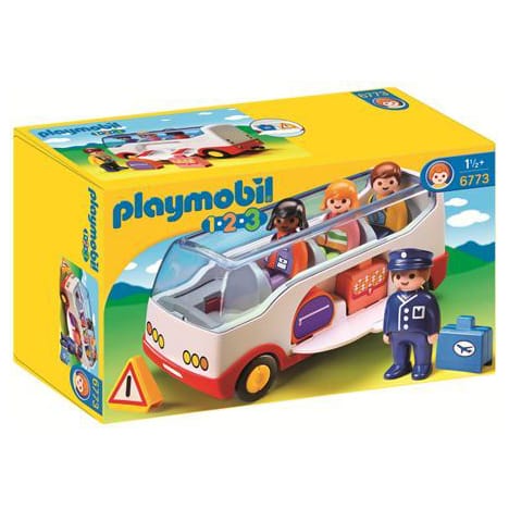 - L'autocar de voyage est accompagné de 4 personnages. Les valises permettent un jeu de formes avec leurs rangements dans l'autocar.