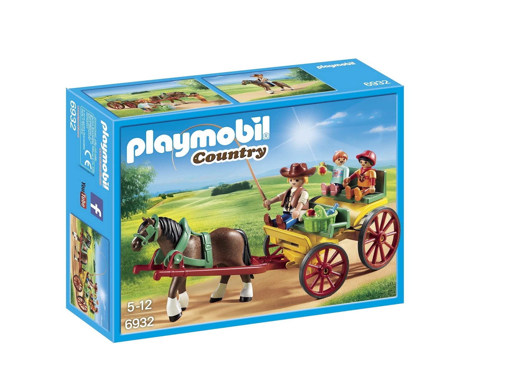 - Contient 1 calèche, 3 personnages, 1 cheval et des accessoires (fouet, pommes, sceau…)