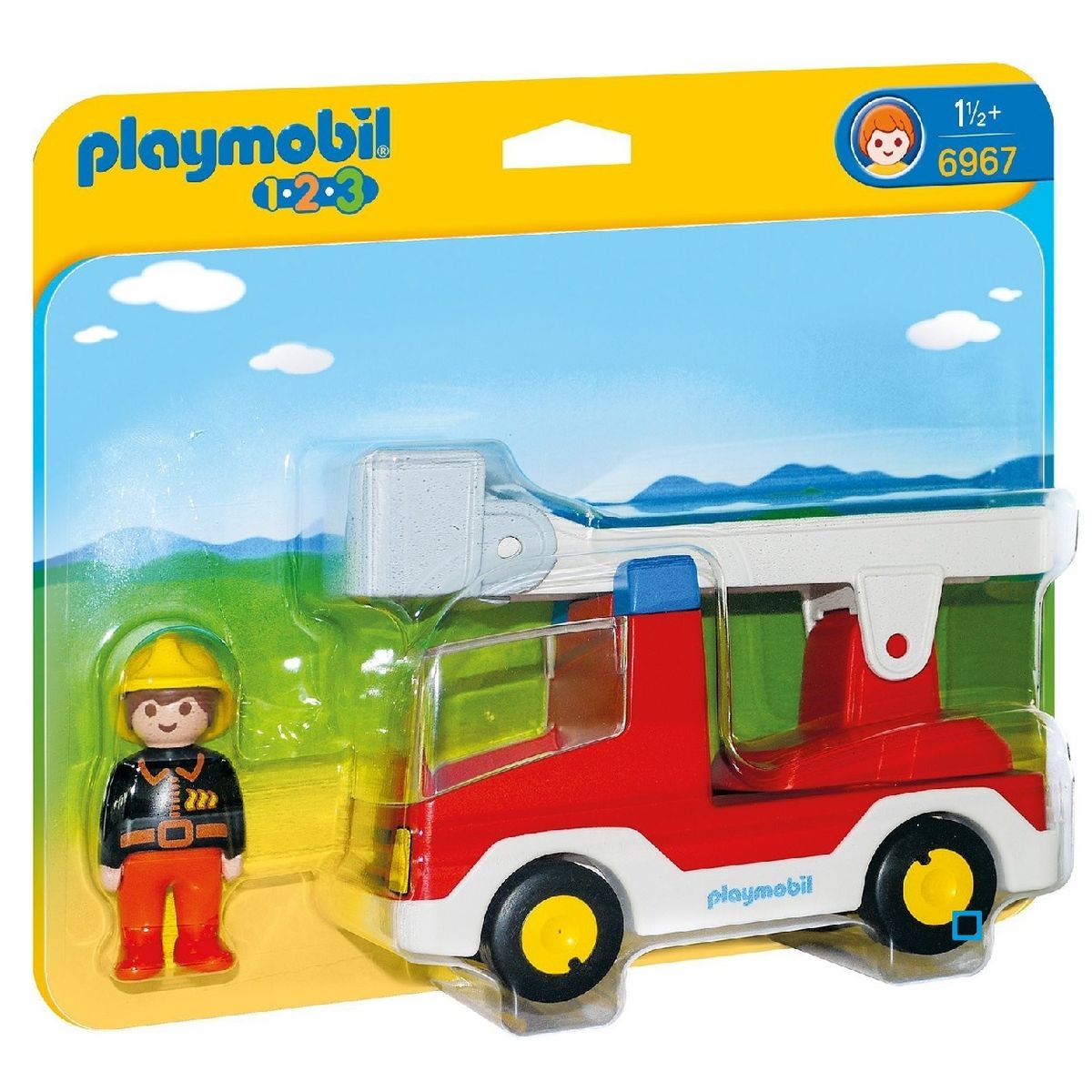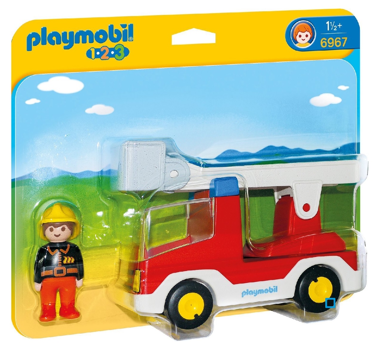 Grâce à son super équipement moderne, le pompier fait pivoter l’échelle pour sauver les personnes en danger. Découvre tes talents grâce à Playmobil 6967.