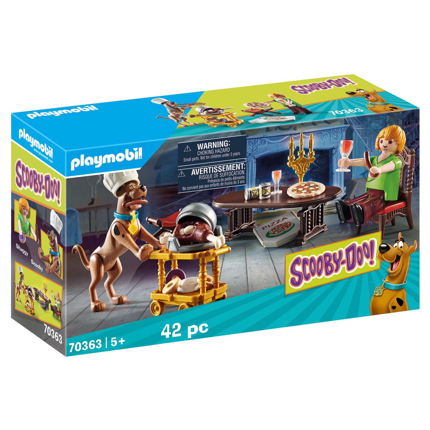 C'est le moment de faire une pause dans l'enquête, Sammy et Scooby-Doo se retrouvent pour le dîner. Attention, c'est Scooby-Doo qui assure le service à table... Scooby-Doo Playmobil 70363 !