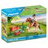 C'est un moment privilégié entre le petit garçon et son poney Connemara, il prend bien soin de lui. La boîte rouge contient de nombreux accessoires. Encore un petit coup de brosse et il sera prêt pour la balade !