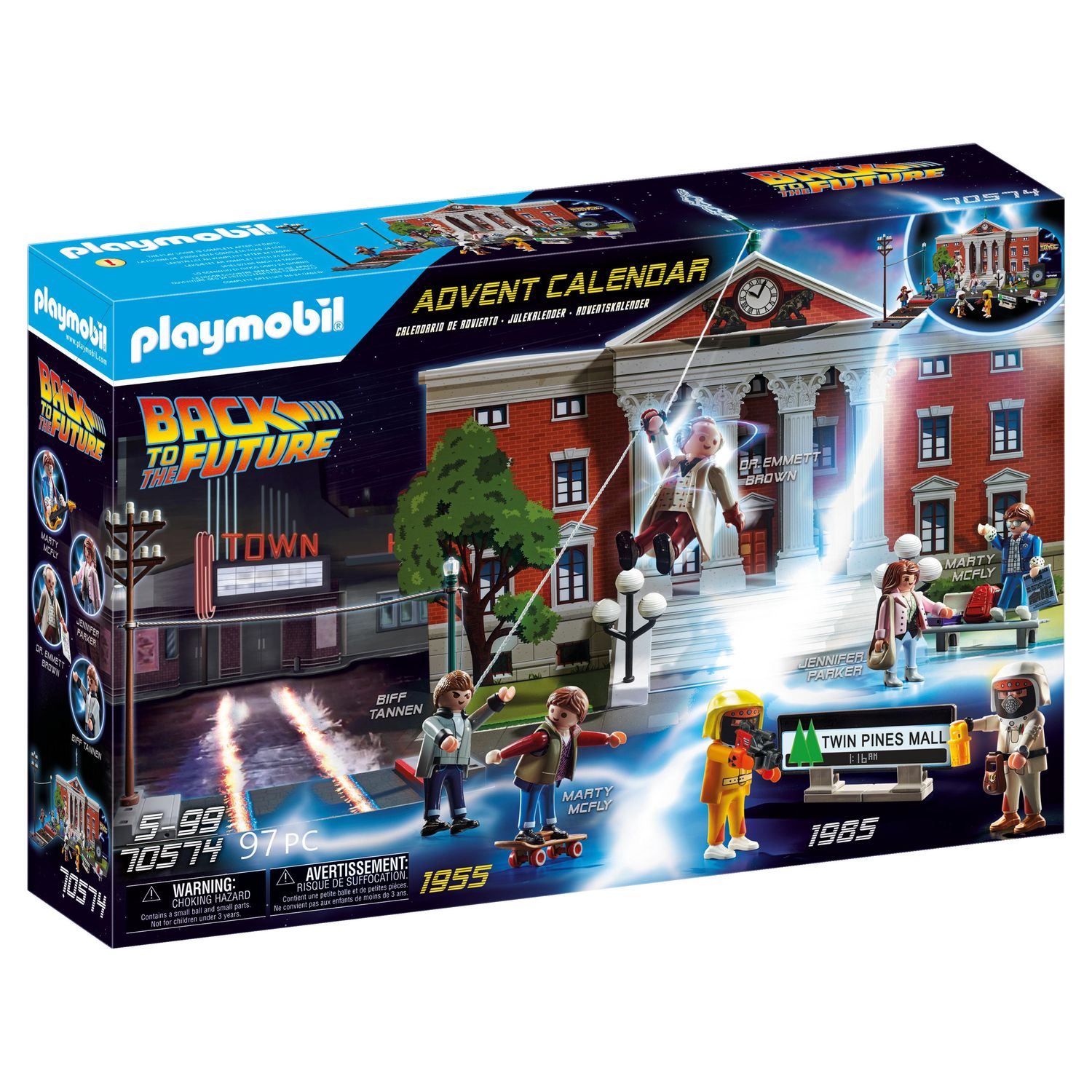 Le calendrier de l'Avent de PLAYMOBIL® 70574 Retour vers le futur comprend 24 petites fenêtres derrière lesquelles se dissimulent des personnages et des accessoires Playmobil !