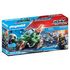 Alerte ! Un bandit vient de voler tout un coffre fort blindé de la banque de la ville ! Regarde sa voiture ! Il tract le coffre avec à l'aide d'une corde. Un policier le poursuit avec son kart. Va-t-il réussir à le rattraper ?