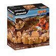 Pour se venger, Pain a détruit une grande partie de du village caché de la feuille. Quand Naruto revient dans le village détruit, il affronte Pain dans un combat épique. Contient 3 personnages (Naruto, Pain et Hinata), 1 Gamakichi (crapaud orange) et de nombreux accessoires (les batons de Pain Kuroi Jushinki , des pierres?). Deux catapultes en pierre se trouvent sur les deux côtés du cratère.