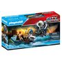 Alerte alerte ! On a besoin de renfort ! Le nouvel équipement de la police va enfin être utilisé, le voleur s'enfuit sur son canoë. Pas de temps à perdre, l'agent enfile son réacteur dorsal et part à sa poursuite ! Quelle sensation, on dirait qu'il vole ! Dimensions du canot pneumatique à moteur : 1