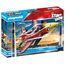 Peu de temps après, il exécute des figures de grande classe dans les airs avec la plus grande concentration pour offrir un ballet aérien hors du commun. Le train d'atterrissage est rétractable. Contient un personnage Playmobil, un jet avec turbine rotative, deux pylônes ainsi que de nombreux accessoires. Dimensions du jet : 40 x 38 x 14 cm (LxPxH).