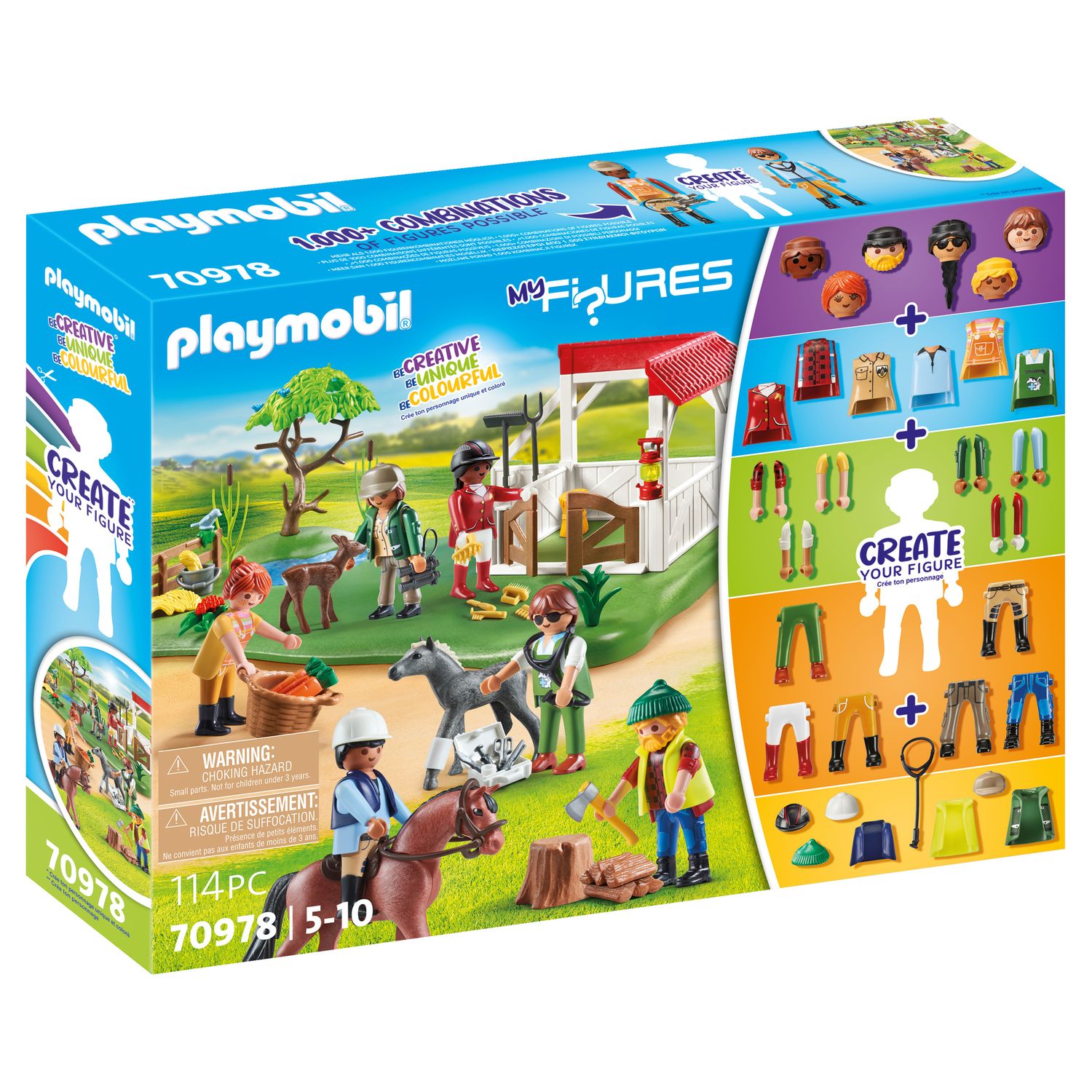 - Chaque personne est unique et différente. Avec les nouveaux PLAYMOBIL My Figures, les enfants peuvent imaginer des personnages à l’infini et créer un monde PLAYMOBIL qui leur ressemble: plus de 1000 combinaisons possibles ! Les sets My Figures permettent de libérer leur créativité et leur capacité à inventer de nouvelles histoires.