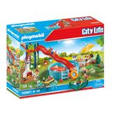Passez un moment agréable et plongez dans la piscine. Si vous êtes plutôt amateurs de sensations, passez par le toboggan. Après tant d'efforts, on se met tous à table autour d'un bon repas ! Le barbecue est prêt, on apporte les grillades ! Et comme on a tout prévu, on peut même allumer les lumières quand le nuit tombe. Le set de jeu contient quatre personnages, quatre lapins, un toboggan ainsi que de nombreux accessoires.