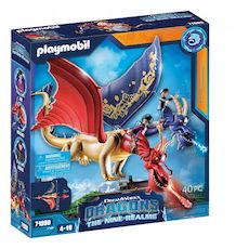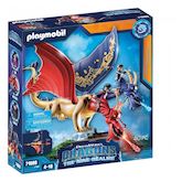 2 personnages et des accessoires. Les 2 têtes du dragon lancent des projectiles.