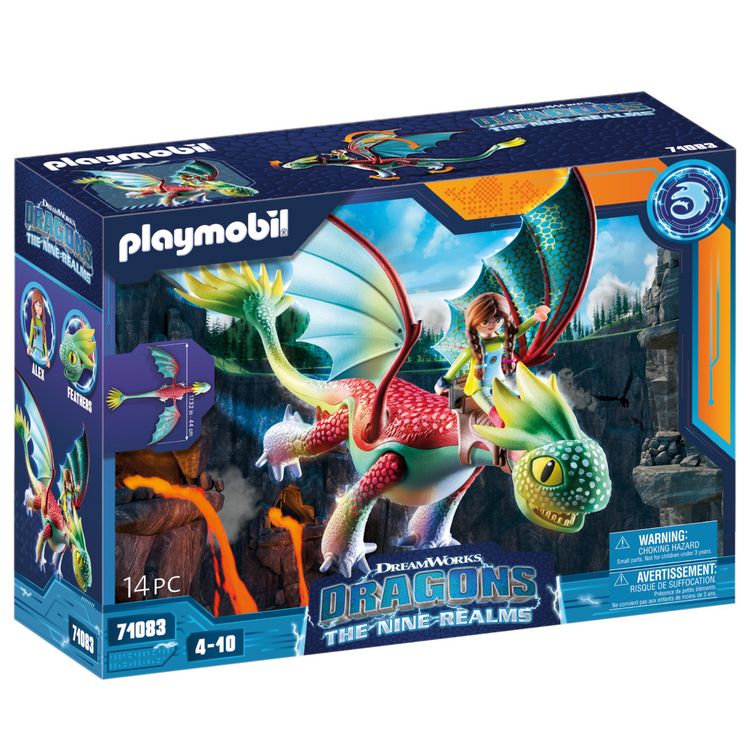 Si tu es fan de Dragons, tu vas adorer jouer avec ces 2 personnages : Feathers & Alex ! Pars à l'aventure dans les airs en chevauchant ton dragon et combat tes ennemis ! Tu vas pouvoir jouer et inventer des histoires tout en laissant libre cours à ton imagination.