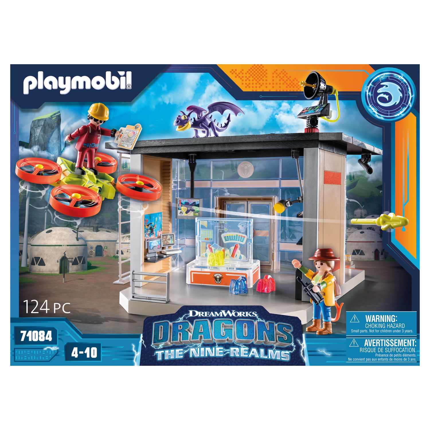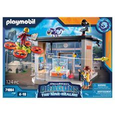 Jeu de construction Dragons : The Nine Realms. Il est possible d'entrer dans le laboratoire par deux portes battantes et découvrir de nombreux accessoires : drone, ordinateurs, échantillons, etc. Une zone d'atterrissage pour faire décoller et atterrir le drone se trouve même sur le toit.